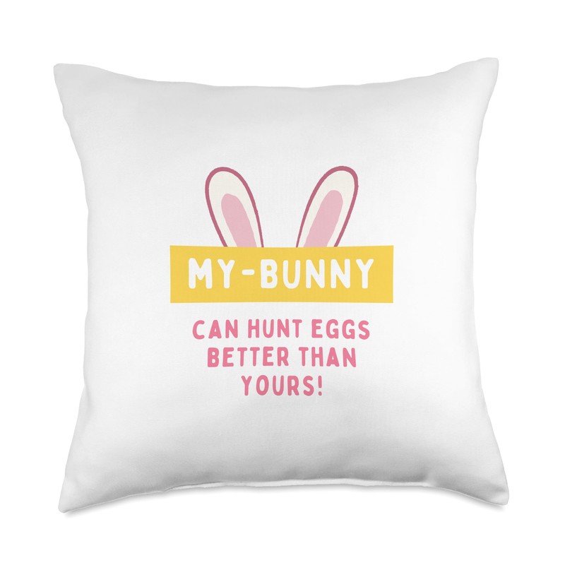 my easter bunny hunt eggs Throw Pillow, 18x18, Multicolor