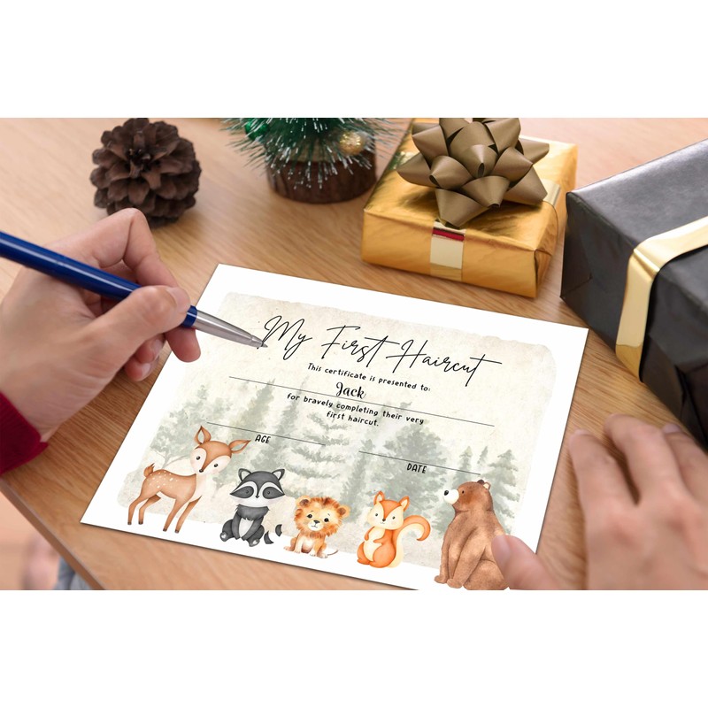 My First Haircut Certificate, Wild Animal Award Certificates of Hair Cutting, Safari Jungle First Haircut Keepsake Gifts for Kids Children Baby Girls Boys, 25 Pcs Awards Certificates -04