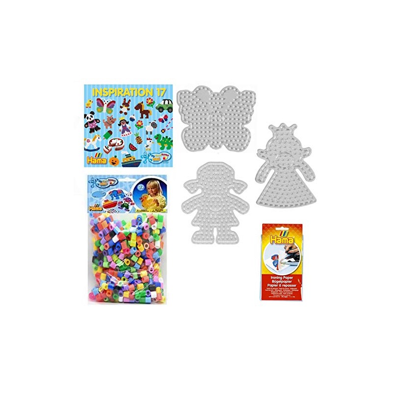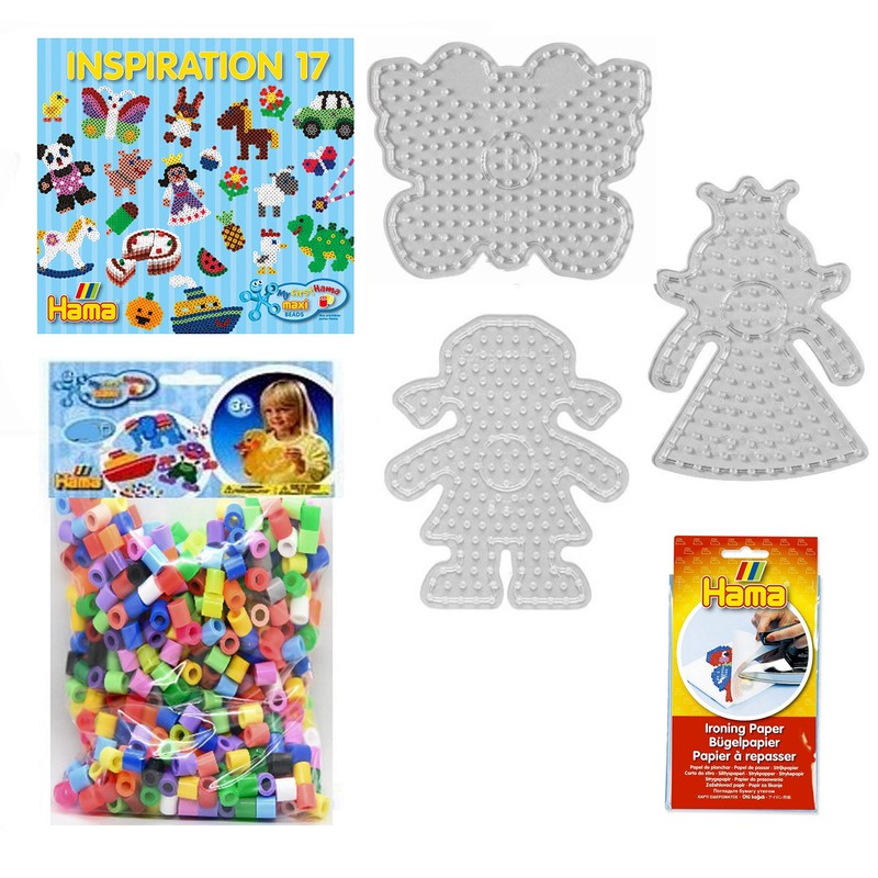 - My First Hama Maxi Ironing Beads Starter Set 2 (3 Pin Plates, 600 Beads, Template Book, Ironing Paper)