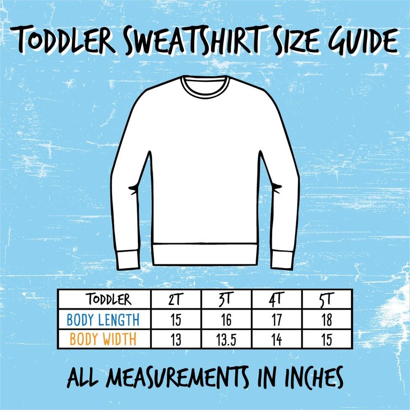 - Printed on a Kids Toddler Sweatshirt. Standard Fit.