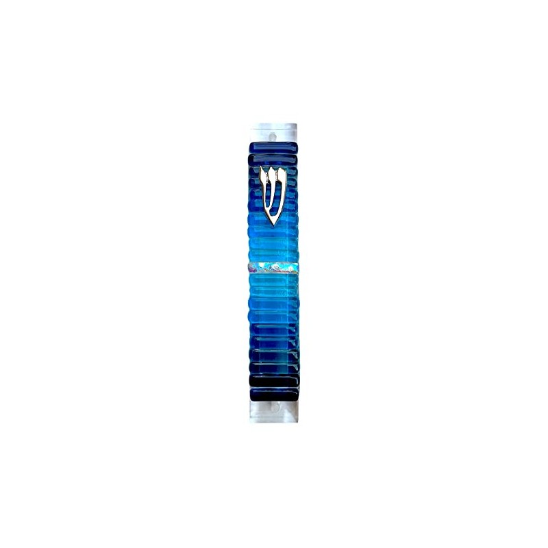 My Glass Expressions Jewish Mezuzah Premium Glass Mezuzah Case House Blessing – Exquisite Handmade Craftsmanship Mezuzah Scroll Not Included (Blue, April Sky)