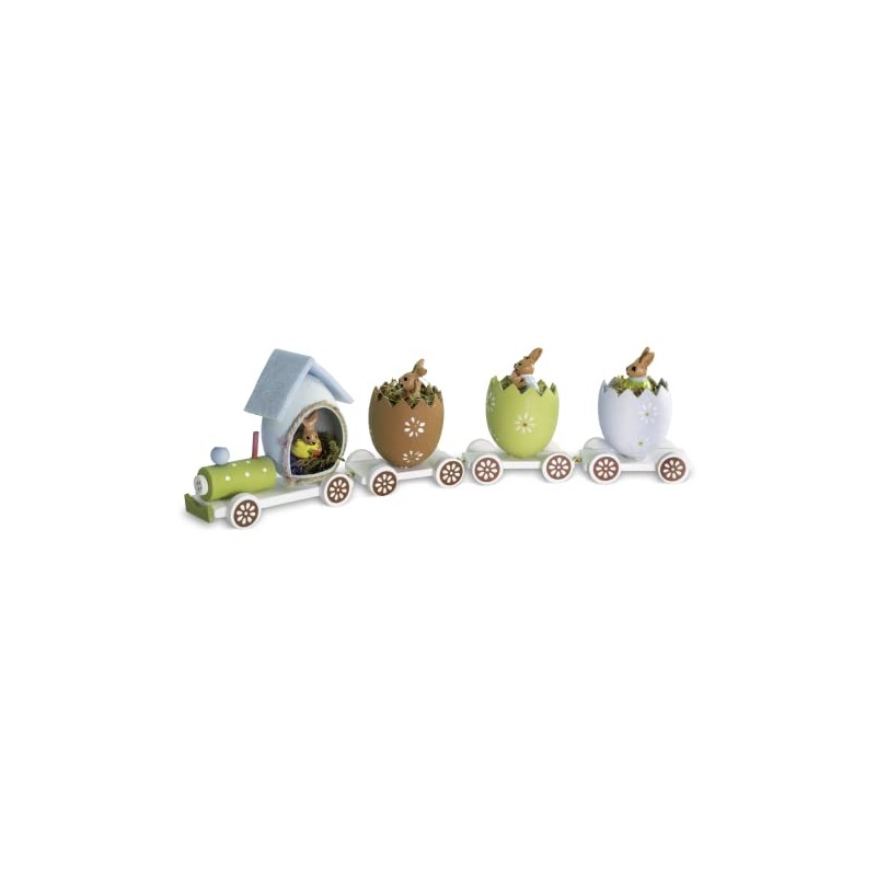 My Home Easter Train Easter Decoration Rabbit Train Easter Gift, Egg Cart, Easter Eggs and Rabbits, Ice Rink, Approx. 29 x 8 cm