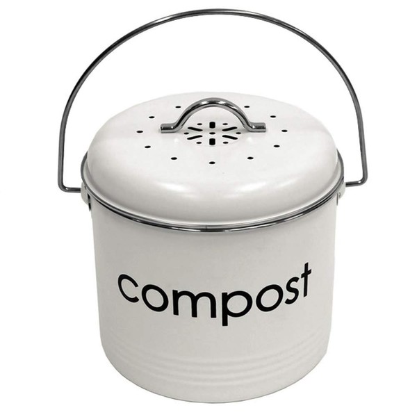 - Eco-friendly compost, white powder coated carbon steel with a movable chrome handle