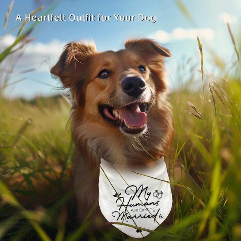 - 【FUNNY ENGAGEMENT DESIGN】Featuring design with the phrase "My Humans are Getting Married" Dog Bandanas printed on a classic black and white dog bandana, this accessory adds a touch of humor to your wedding ensemble. It serves as a delightful engagement announcement decoration for your furry friends.