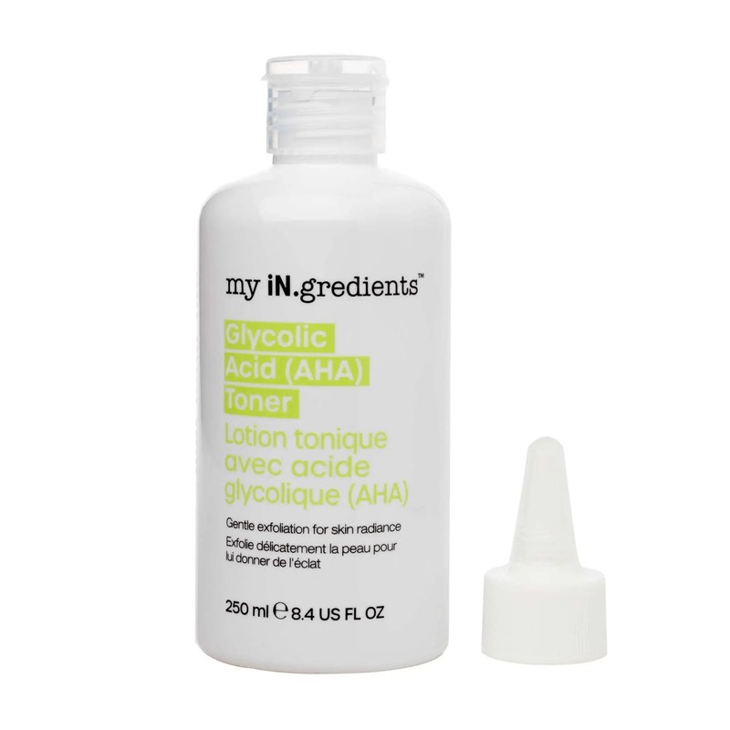 The My In.gredients Toner Glycolic Acid is a must-have for radiant and even skin! This toner gently exfoliates the skin, removing dead skin cells and refining the skin texture. With 7% active Glycolic Acid (AHA), this formula helps to address visible sun damage, clogged pores, and texture irregularities.