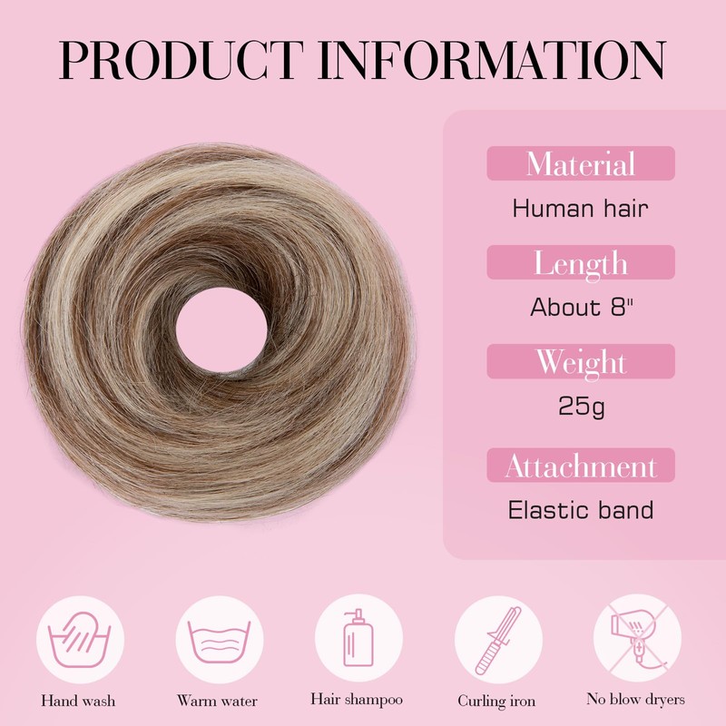 - 100% Real Human Hair - This hair messy bun is made from high - quality human hair. The hair texture is soft, fluffy, and natural, allowing it to blend seamlessly with your own hair. Others won't be able to tell that you're wearing a hair bun. Since it's crafted from human hair, it can be washed, dyed, or styled.