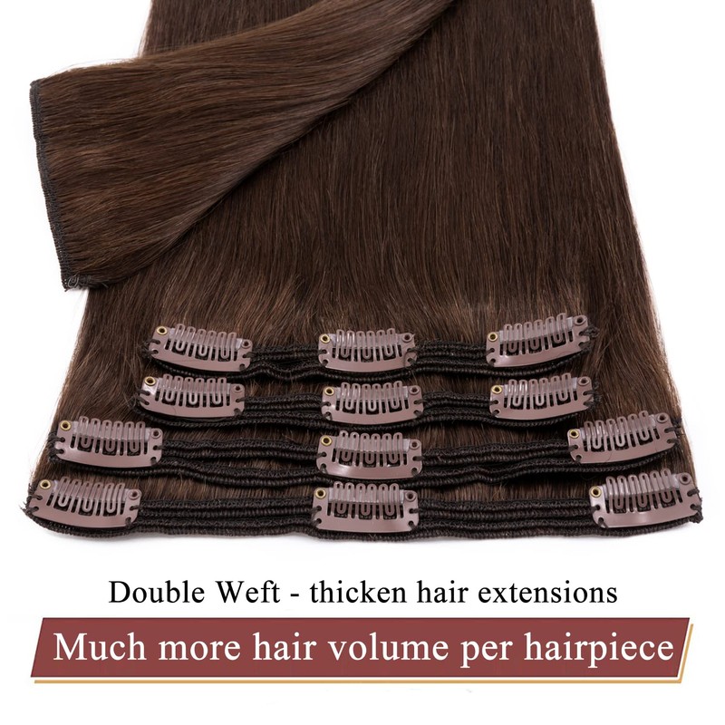 - [DOUBLE WEFT & THICK]: Well-crafted double wefts sewn with much more hair enable the hair extensions to keep full thickness from top to end and make it much thicker.