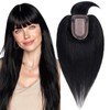 MY-LADY Human Hair Toppers for Women Real Human Hair with Bangs Thin 7 * 13CM Silk Base with Lace 150% Density Clip in Remy Hairpieces 5 Inch Jet Black
