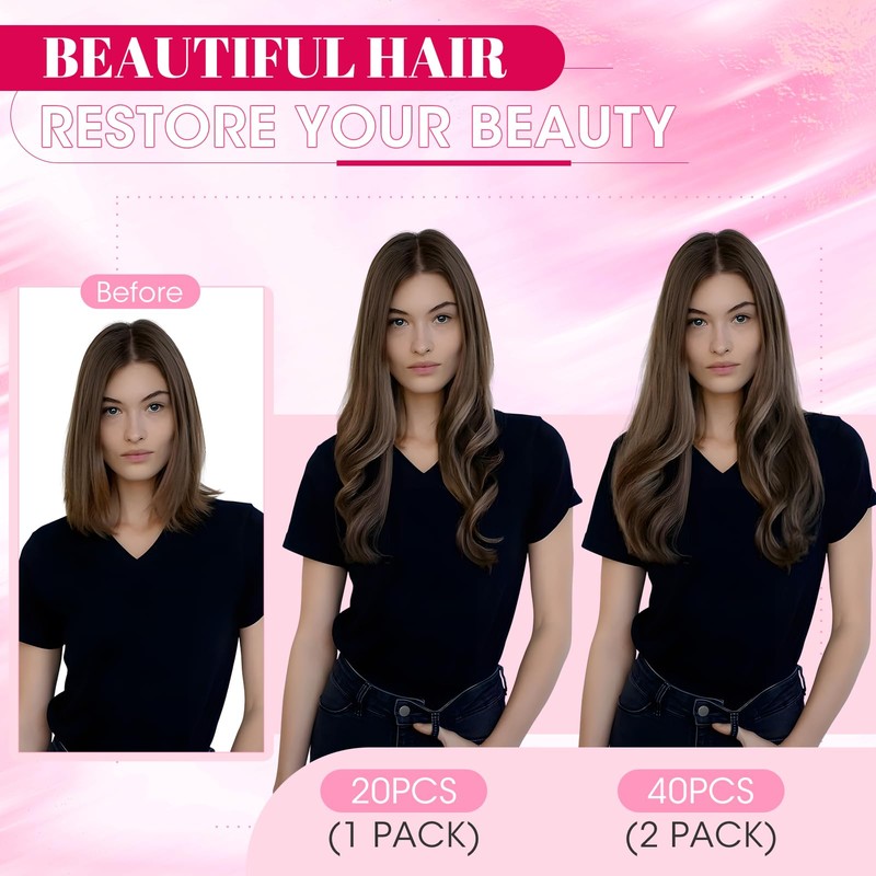 - 👍Specifications: 🔘Quantity: 20pcs/pack 🔘Weight: 30g 🔘Hair Length: 12 Inch 🔘Hair Colour: #4 Medium Brown🔘Hair Type: 100% Real Human Hair 🔴We recommend 1-2 packs for adding volume, and 2-3 packs for stretching length.