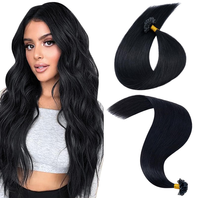 MY-LADY Keratin Bond Hair Extensions 14 Inch U Tip Pre Bonded Hair Extensions Real Human Hair Hot Fusion Invisible #1 Jet Black 25g