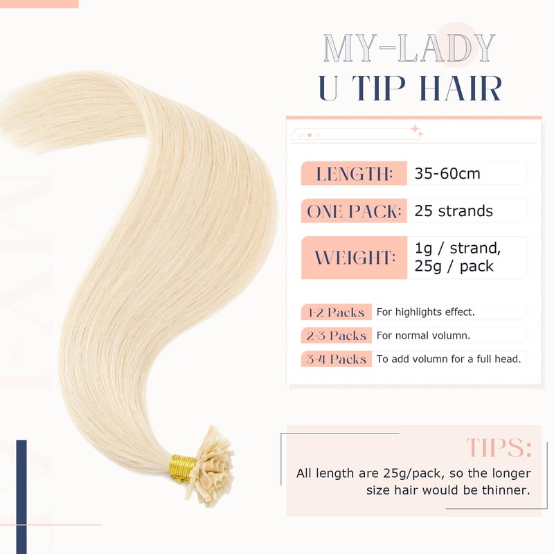 - 👍Experience the ultimate in u tip hair extensions with MY-LADY.U tip hair extensions real human hair has a "u" shape, it is use of hot fusion, keratin glue is gentle for hair and provide a long lasting bonding.Perfect for client who prefers not to frequently salon or style their hair everyday.