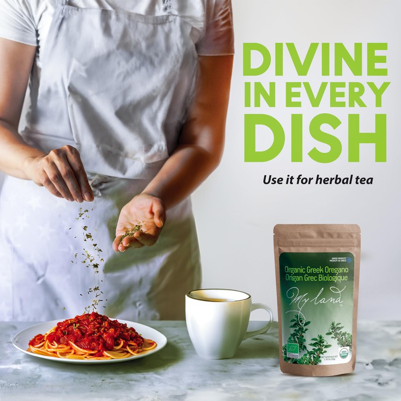 MY LAND My Land Organic Greek Oregano from Mount Olympus, Greece C Dried, Handpicked, Tiny Cut Oregano Leaves in Resealable Kraft Bag, 50g (1.76oz)