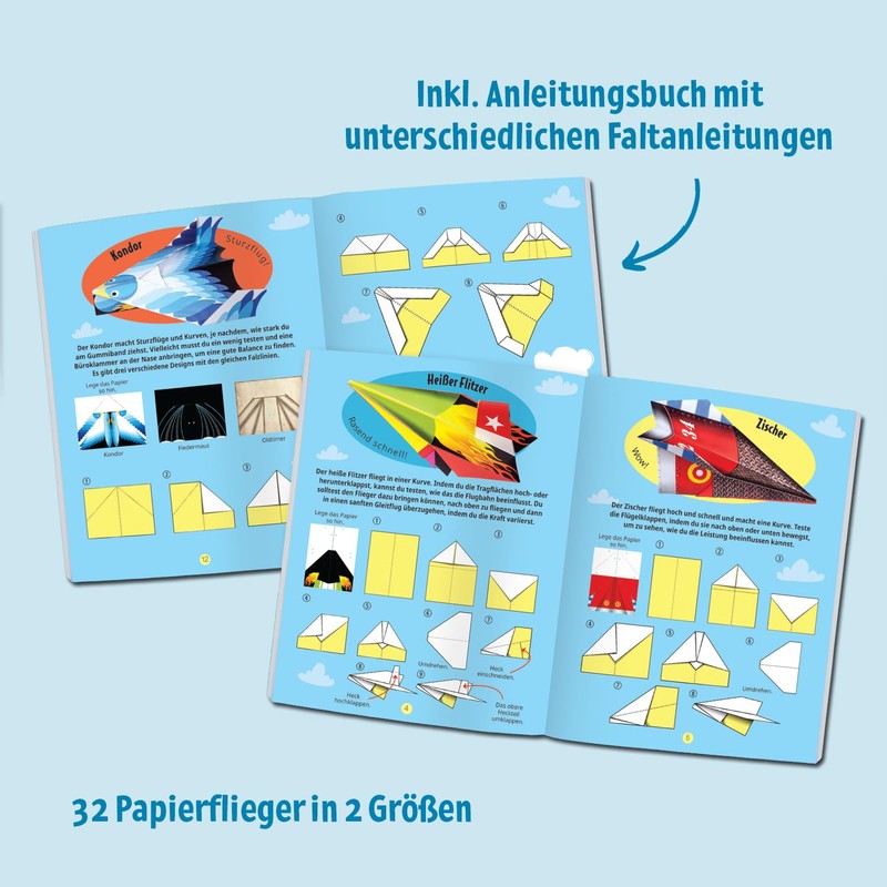 - Craft case with 32 colourful paper plane templates in 2 sizes