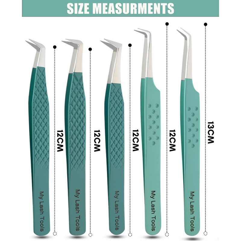 My Lash Tools Fiber Tip Lash Tweezers for Eyelash Extensions Tweezers Professional Lashing Tweezers, 5Pcs Stainless Steel Boot Volume Eye Lash Tweezer for Lash Experts and Personal Use