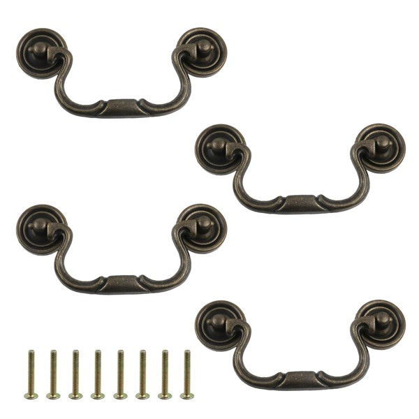 MY MIRONEY 4PCS Bail Drawer Pulls Hardware Zinc Alloy Cabinet Pulls Handles Antique Bronze Drop Swing Handles with Screws, 3.86" Hole Centers, Type 4