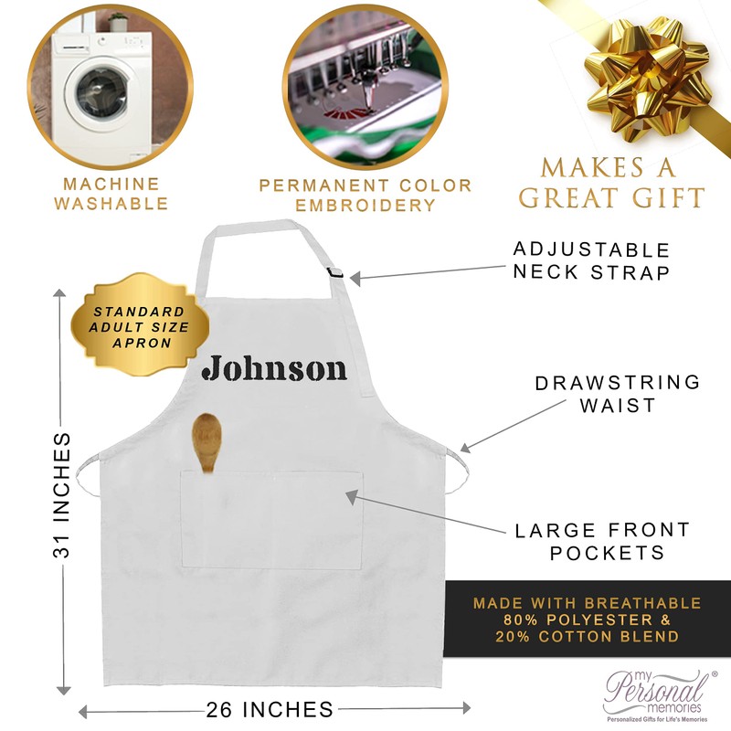 My Personal Memories Customized Apron for Adults, Men, Women, Grill, Kitchen - Add any Name or Text (White)