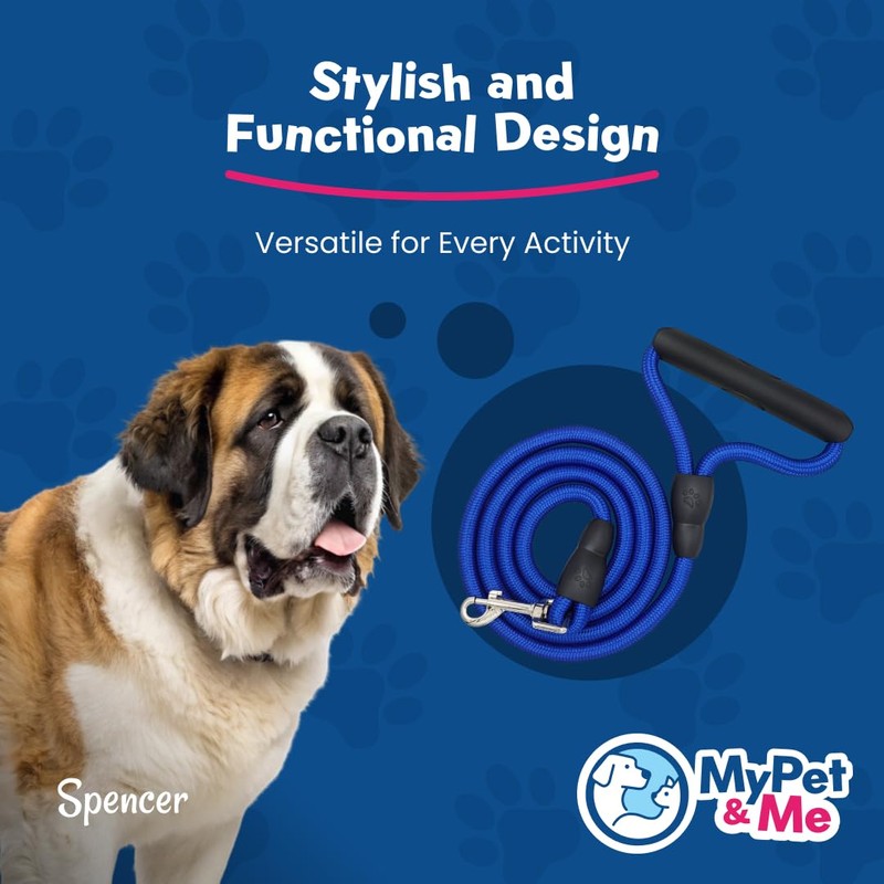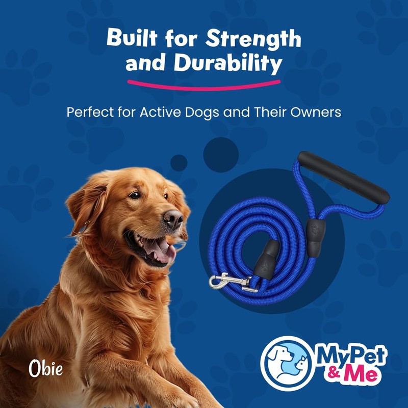 My Pet & Me - Heavy Duty Dog Leash for Large & Medium Dogs - Durable Training Leash with Soft Padded Handle - Strong Pet Leashes for Walking, Running & Outdoor Activities (Blue, Large)