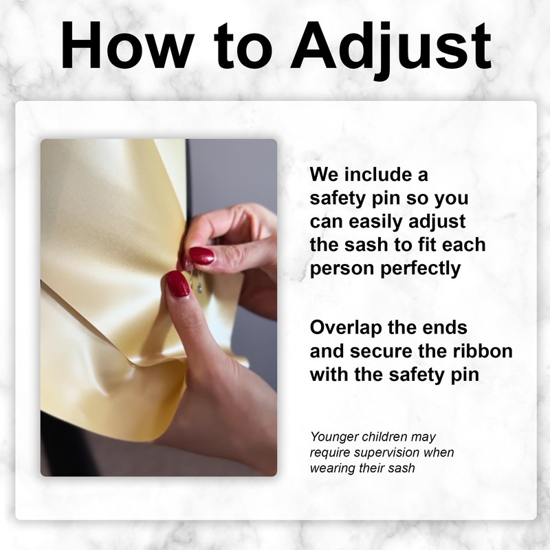 - Cut from luxury satin ribbon, and comes with a safety pin to make it a perfect fit for each person to wear.