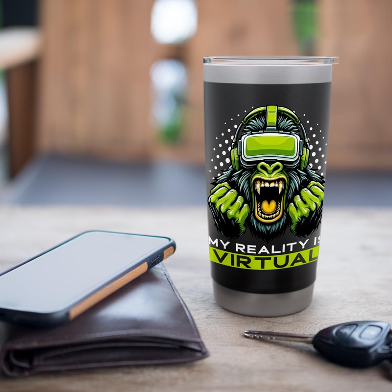 My Reality Is Virtual VR Virtual Gamer Gorilla Headset Stainless Steel Insulated Tumbler