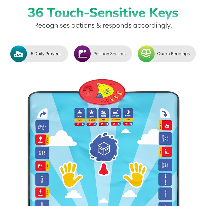 My Salah Mat for Kids - Smart Interactive Prayer Mat for Learning The Salah - Fun & Easy Kids Prayer Mat with 36 Touch Keys, 15 Languages, Speaker, & Booklets - Islamic Toys for Ages 3 to 8