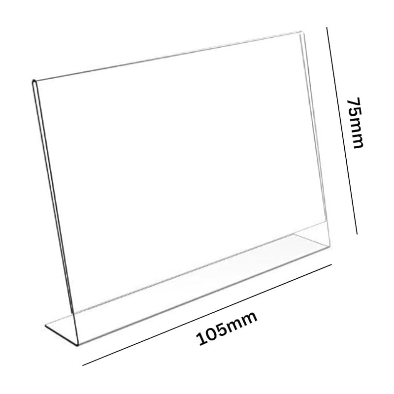 - PRODUCT DIMENSIONS - A7 (105 x 75mm) clear picture frames with a sturdy 7,6 cm base. The waterproof paper display stand will protect your signs from stains, scratches, and tears.
