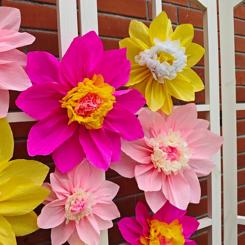 Mybbshower Crepe Paper Flower for Wall Paper Pom Pom Decor Girls Birthday Party Backdrop Baby Shower Nursery Decoration Pack of 9 (hot Pink Yellow)