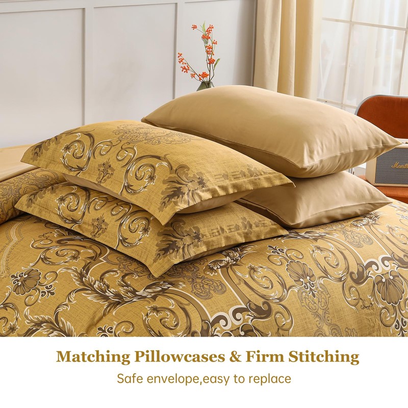 - [Unique Damask Floral Design]: This queen comforter set is made of unique damask medallion pattern, combined with the gold background, making this comforter exudes style and luxury, will be a good artistic home bedding decoration and suitable for all ages.