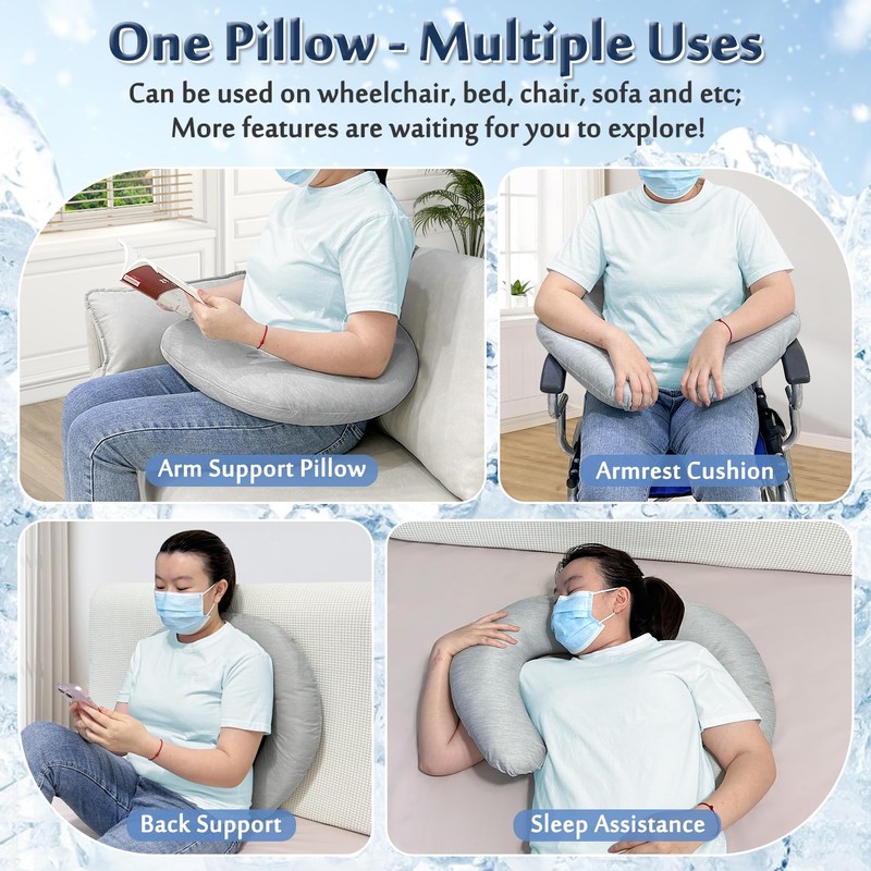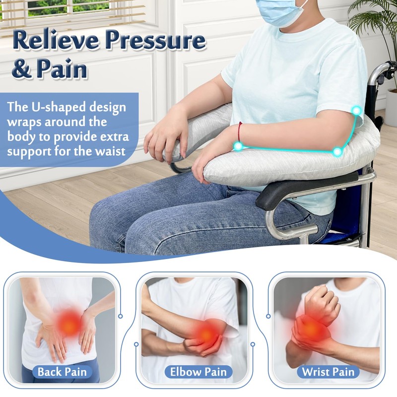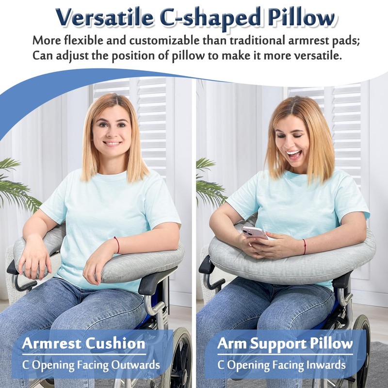 - 【Wheelchair Pillow】3.9-inch thick C-shaped pillow provides soft cushioning and support for your arms and back; Relieves the pressure and pain caused by prolonged sitting, and improve sitting posture.