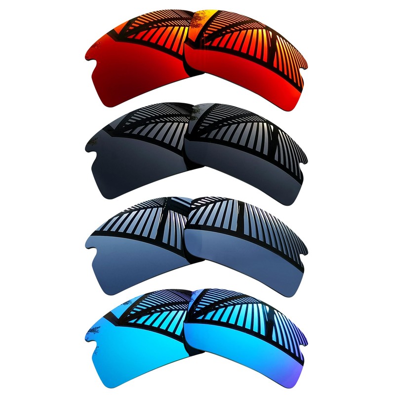 MYCOURAG 4 Pairs Replacement Lenses for Oakley Flak 2.0 OO9295 Sunglasses - Solid Black+Titanium+Ice Blue+Fire Red