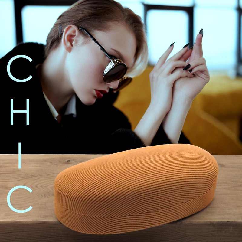 - ❤ SAFE & FASHIONABLE: Metal hard sunglasses case in a Chic Corduroy Beige fabric design, a perfect eyeglass case for MEDIUM & LARGE FRAMES