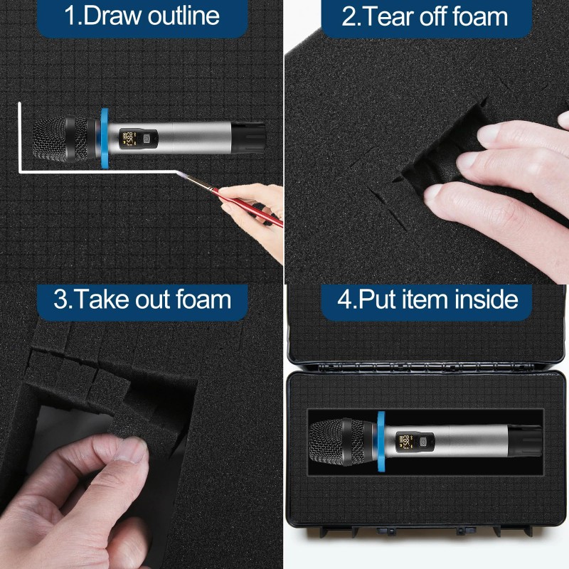 【Wide Application】Case foam inserts are suitable for various types of boxes like tool box, interlock box. Protect items such as ceramic, jewelry, camera, microphone, electronic product and more. Black pluck foams are also widely used in DIY Handicraft, packing, decoration and more.