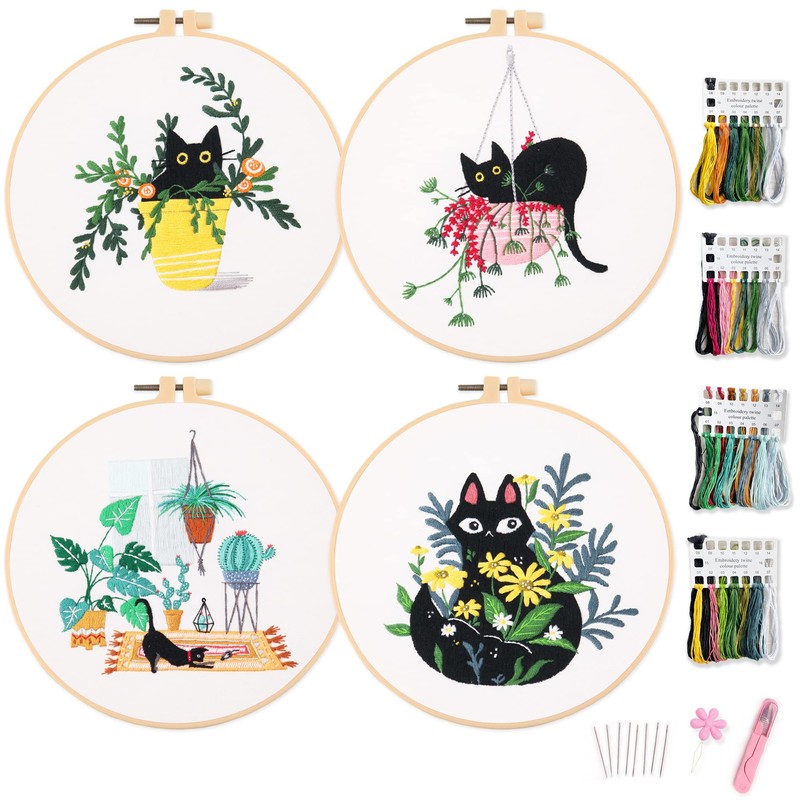 - 【Application】This embroidery kit has different cat and plant patterns, after the work is completed, it can be given as a gift to relatives and friends, or can be used as a decoration to hang in the living room or bedroom.