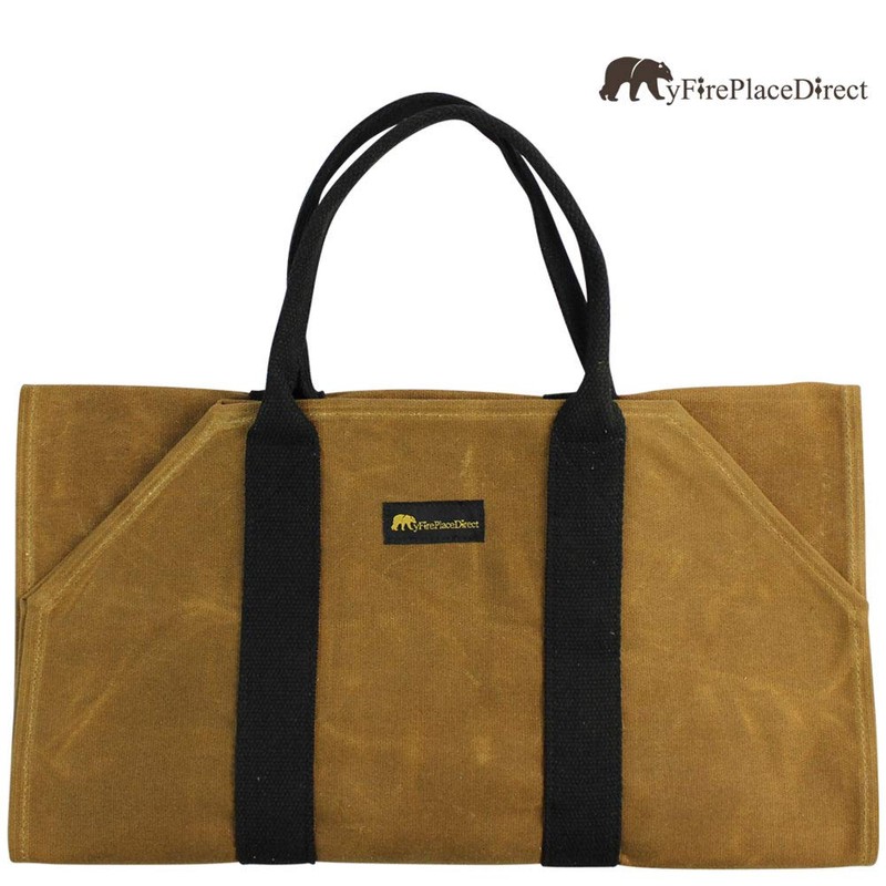 MyFirePlaceDirect Sturdy Waxed Canvas Firewood Log Carrier, Durable Firepalce Wood Bag with Reinforce Cotton Straps