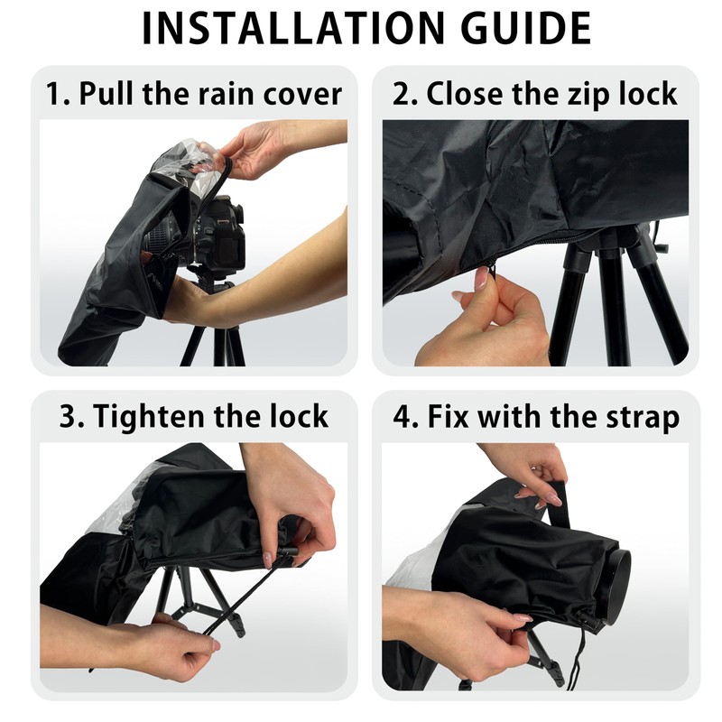 - Details - A clear viewing window, adjustable sleeves and a full-length double zip ensure effortless access to camera control, even when holding and mounting on the tripod.