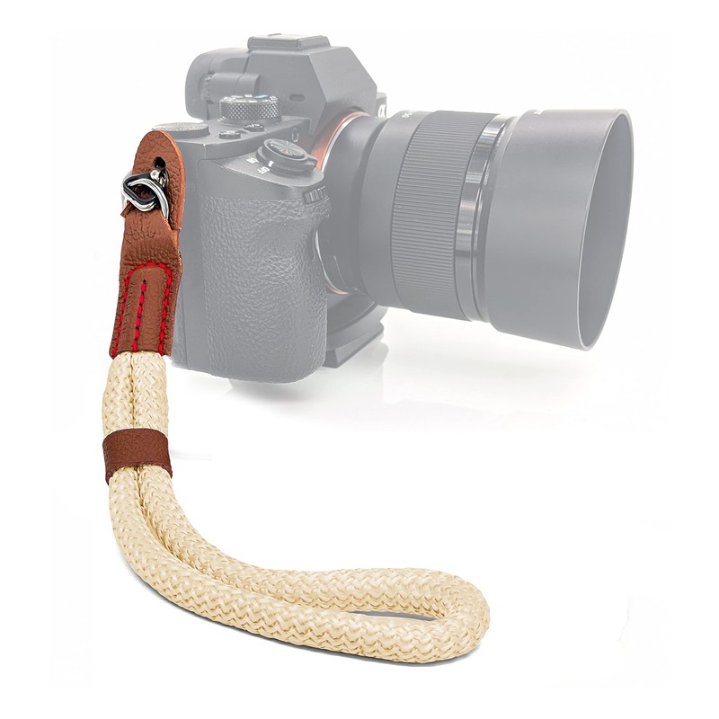 - LOOK - Das stylische Kameraband ist nur 22cm lang und 30g leicht. Das aus Baumwolle geknüpfte Seil liegt dabei angenehm weich auf deiner Haut. Abgesetzte rote Nähte und PU Leder Details machen aus dem Zubehör einen wahren Eyecatcher.
