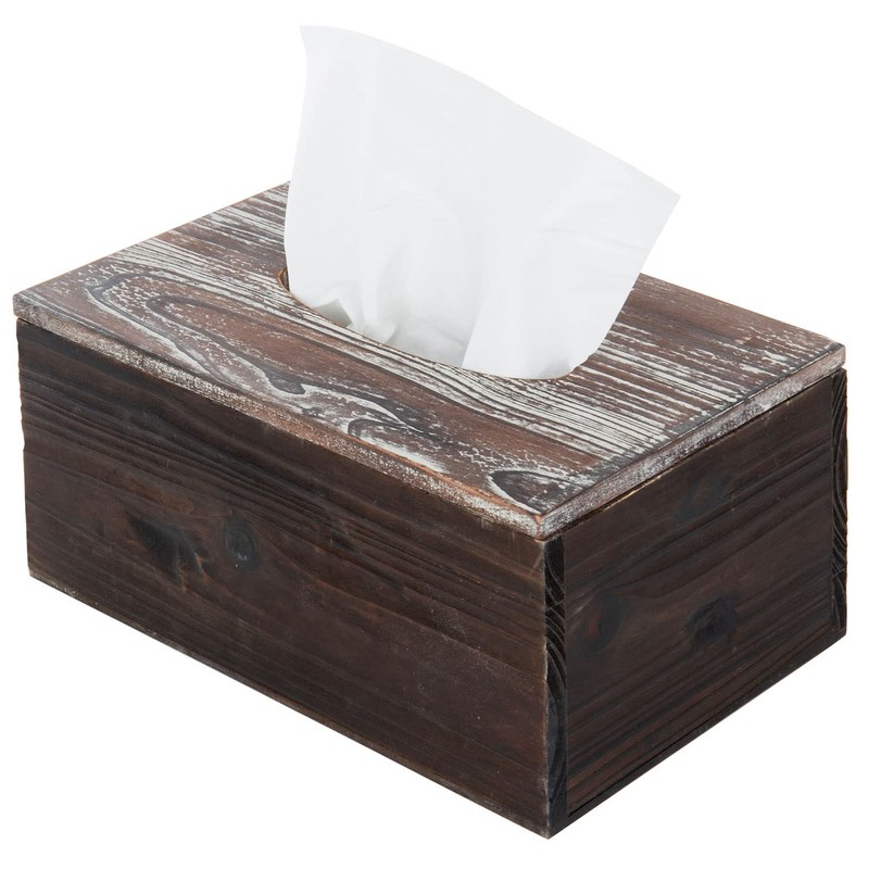 MyGift Rustic Distressed Textured Torched Wood Tissue Box Holder