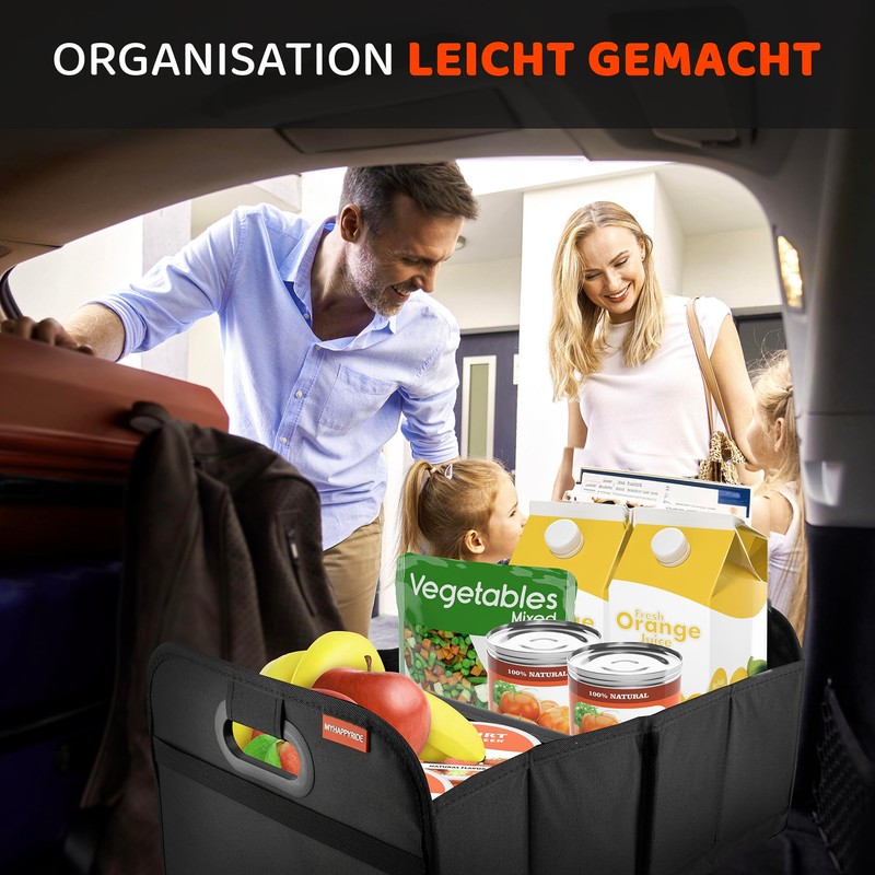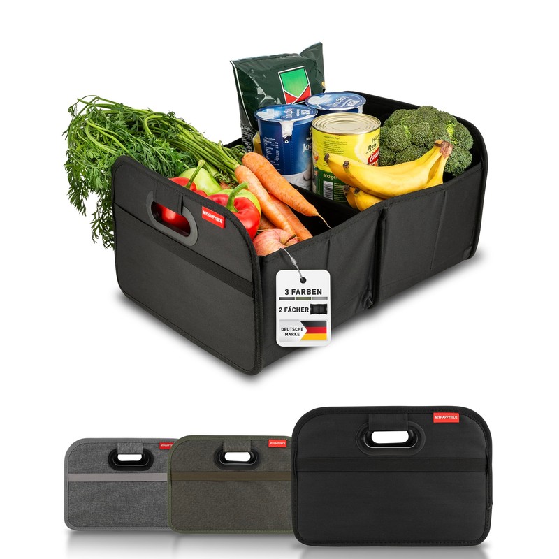 - Available in 3 colours: a colour for every taste. Our large boot organiser is perfect for shopping and fits perfectly in a shopping trolley. Also suitable for cleaning products, care products, tools, toys, camping equipment, office supplies and more!