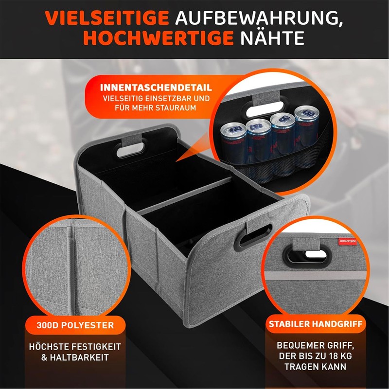- Versatile storage: thanks to the large storage space, our foldable boot organiser ensures that all items are stored safely and organised in the car. With practical inner mesh pocket for smaller items.