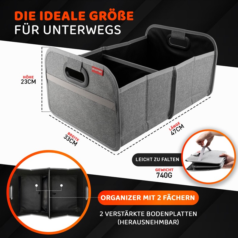 MyHappyRide Car Boot Bag Grey - Boot Organiser Foldable - Foldable Storage Box - Non-Slip and Waterproof Base - Car Folding Box