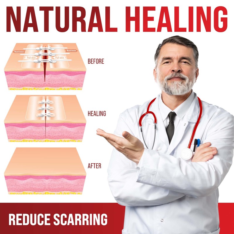 - REDUCE SCARRING Unlike traditional stitches, butterfly closure bandages thanks to their non-invasive technique go without any punctures. In this way, by using MyHelp laceration kit the chances of infection are reduced, and the formation of scarring is minimized.