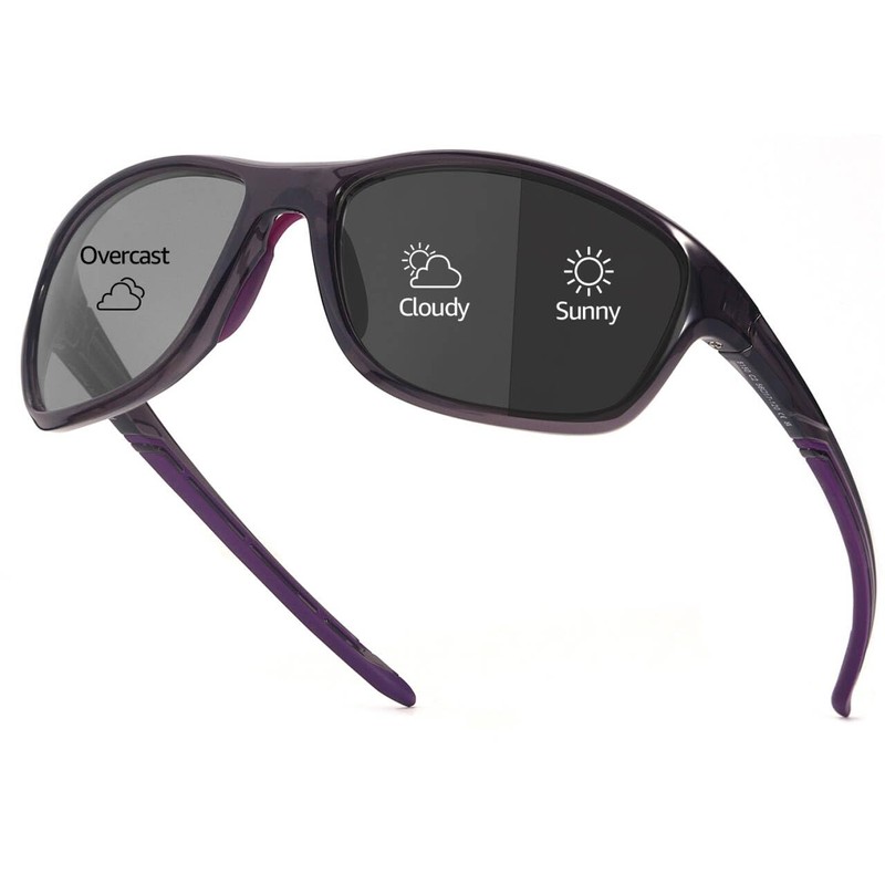 Myiaur Self-tinting cycling glasses, women's polarised sports glasses with UV protection, photochromatic sunglasses for cycling, running and outdoor use, A03 grey