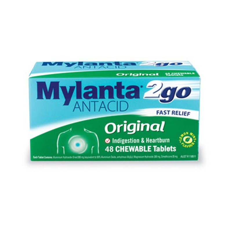 Mylanta 2 Go Antacid Original Tab X 48 rapidly neutralises excess stomach acid, relieving indigestion, heartburn and upset stomach.