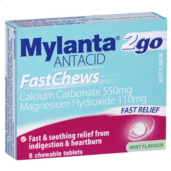 Mylanta 2 Go Antacid FastChews Chewable Tablets Mint offer fast & soothing relief from indigestion & heartburn.