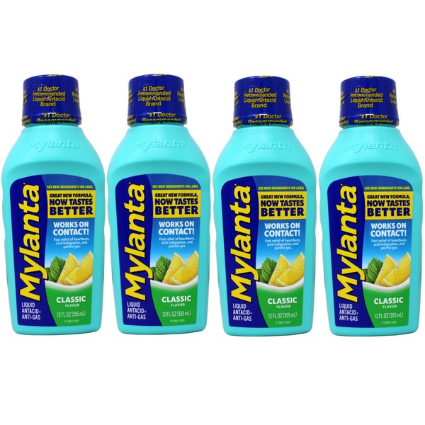 Mylanta Heartburn and Gas Relief, Liquid Antacid, Great New Formula, Now Tastes Better,Classic Flavor, 12 Fluid Ounce - 4 Pack