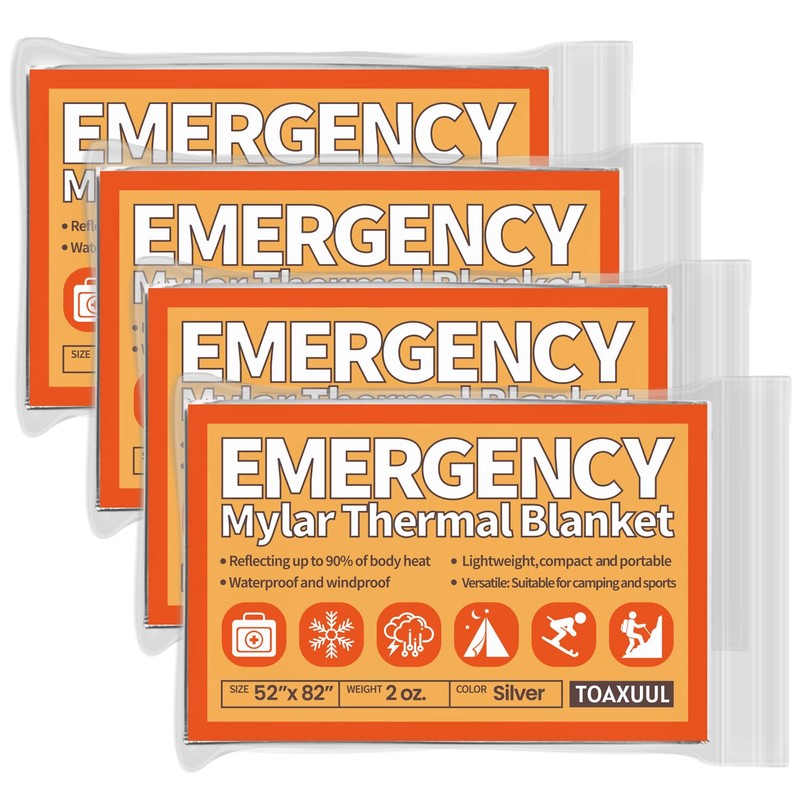 Mylar Emergency Blankets,Survival Emergency Thermal Blankets,4 Pack,82 in x 52 in
