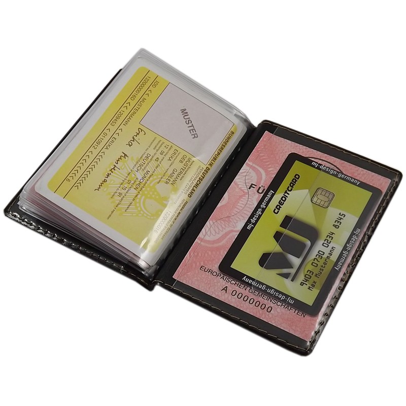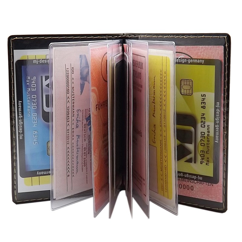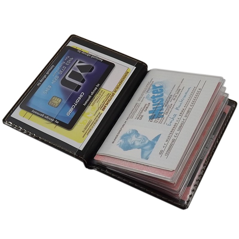 myledershop Elegant ID Card Holder / ID Card Holder with Contrast Stitching 12 Compartments MJ-Design Germany Made in EU Designs, Design 2 / Brown, ID pocket