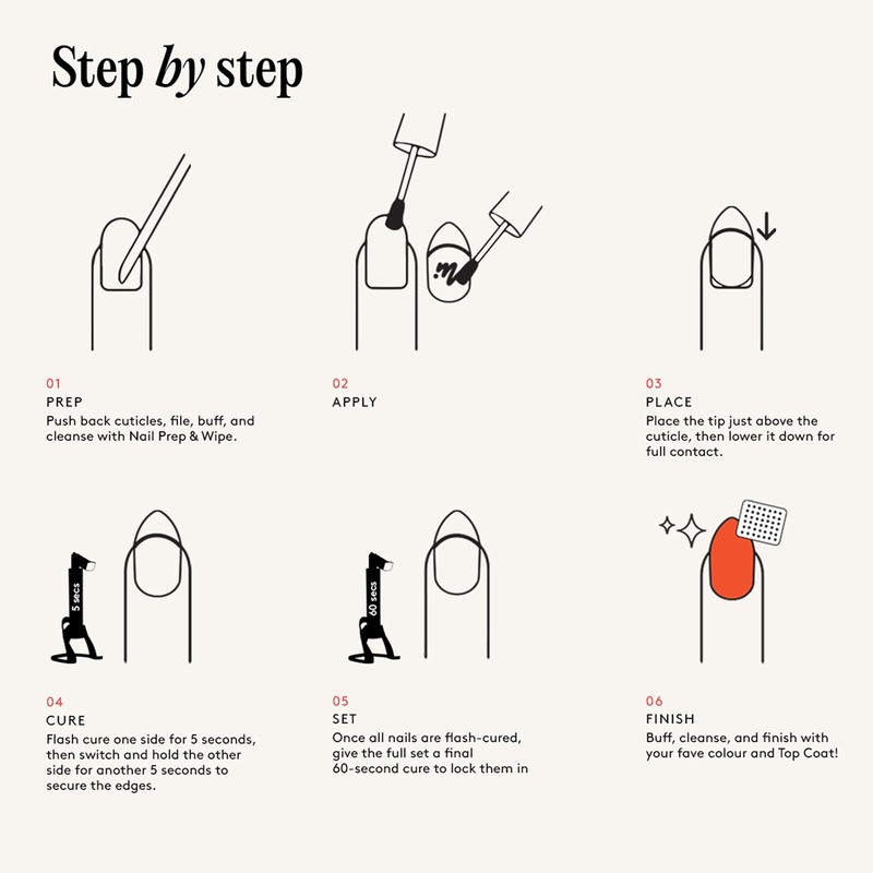 - Speedy curing – Fix N’ Flash Soft Gel Tips are super simple to use. Attach them with the Fix N’ Flash Gel, then cure for a minute under LED light