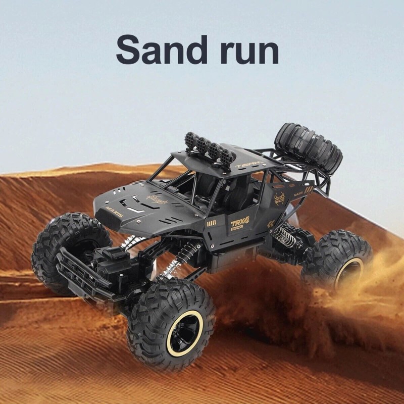 - xcellent Anti-crash & Anti-slip Driving Experience: The four wheels are all packed with anti-slip tires and the shock absorbers which gives support to unexpected dropping and the unstable surface of the ground. The front of the body has an anti-collision car bumper to effectively protect the body and frame that allow you to drive the RC car in all terrains like beach, sand, rock or concrete road.
