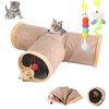 mymai Foldable Cat Tunnel with Soft Suede Cover, Interactive Rustling Tunnel for Cats with 2 Hanging Toys, Ideal for Rabbits Small Pets (Khaki, B)