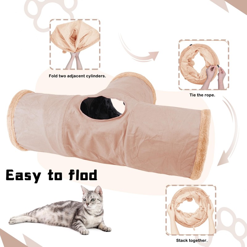 - Double play options: the tunnel for cats with ball contains 2 hanging toys, foldable cat tunnel rabbit tunnel promotes interactivity and stimulates your cat or small pet to exercise more